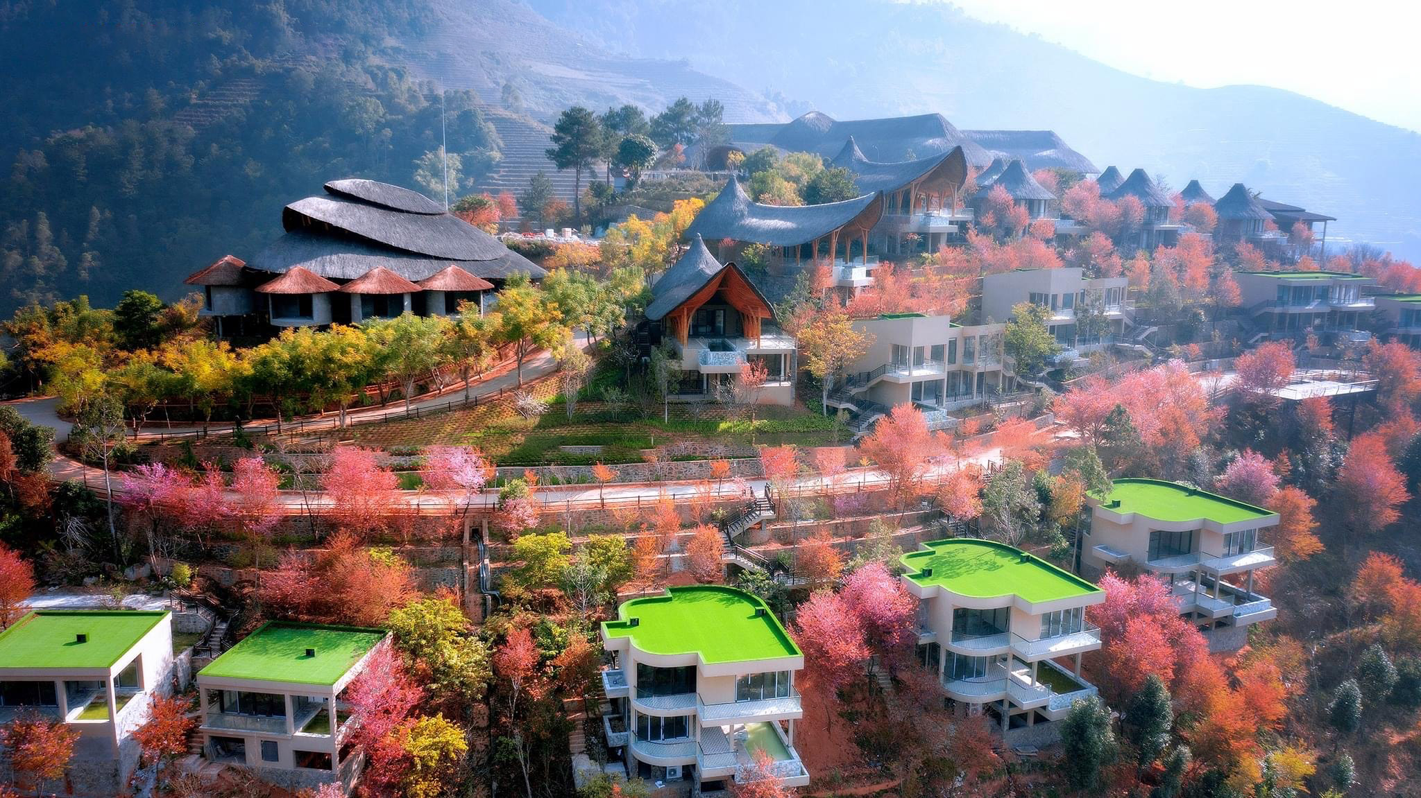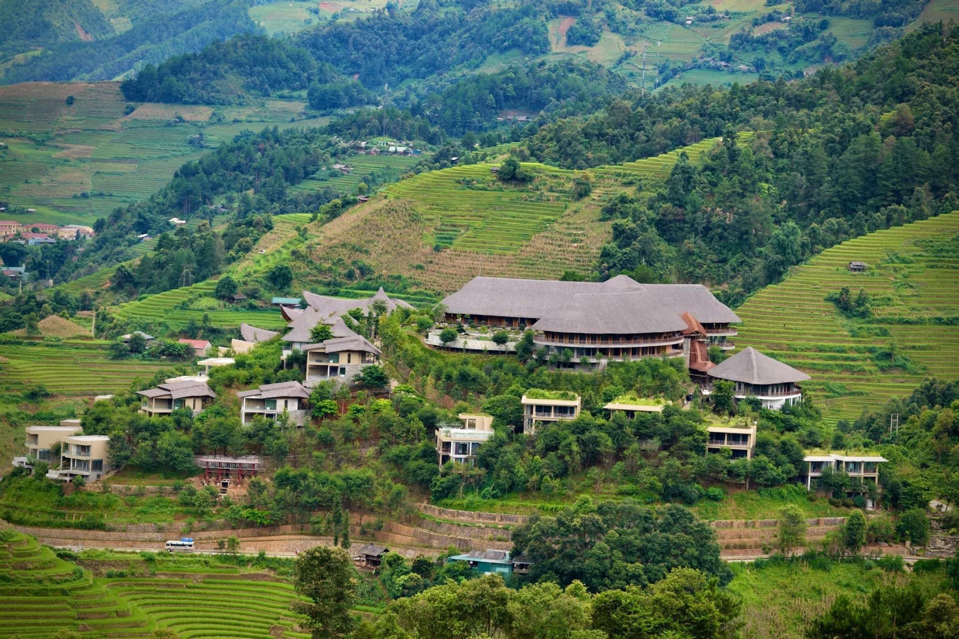 Vị trí: Khu biệt thự VIP được đặt tại sườn đồi Đông Nam của khu resort, nơi có tầm nhìn tuyệt đẹp ra ruộng bậc thang và cảnh quan núi non xung quanh.