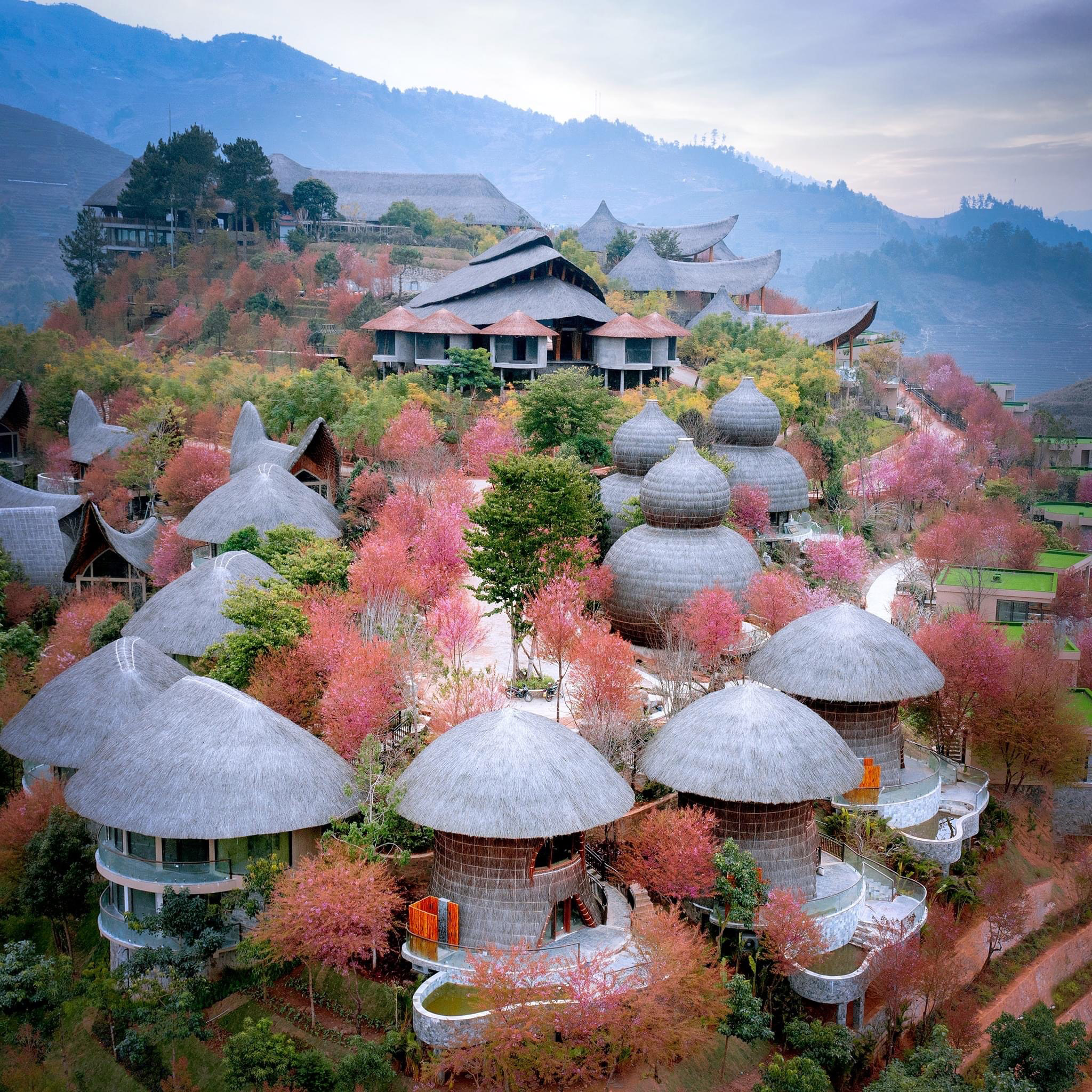 Vị trí: Khu trung tâm được xây dựng tại vị trí cao nhất của khu resort, trên đỉnh đồi, với tầm nhìn bao quát toàn bộ khu resort và các cảnh quan xung quanh, đặc biệt là các ruộng bậc thang và núi non hùng vĩ.