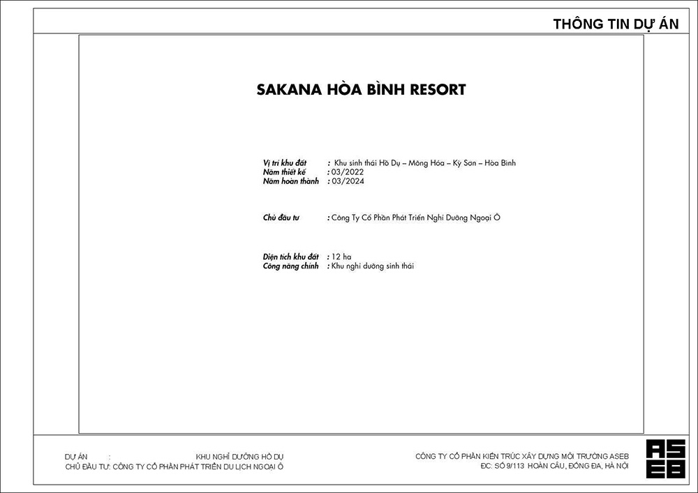 Sakana Hòa Bình Resort là khu nghỉ dưỡng sinh thái cao cấp được phát triển tại khu sinh thái Hồ Dụ – Mông Hóa – Kỳ Sơn – Hòa Bình, với định hướng xây dựng một không gian nghỉ dưỡng mang tính trải nghiệm, hòa quyện giữa thiên nhiên và kiến trúc.