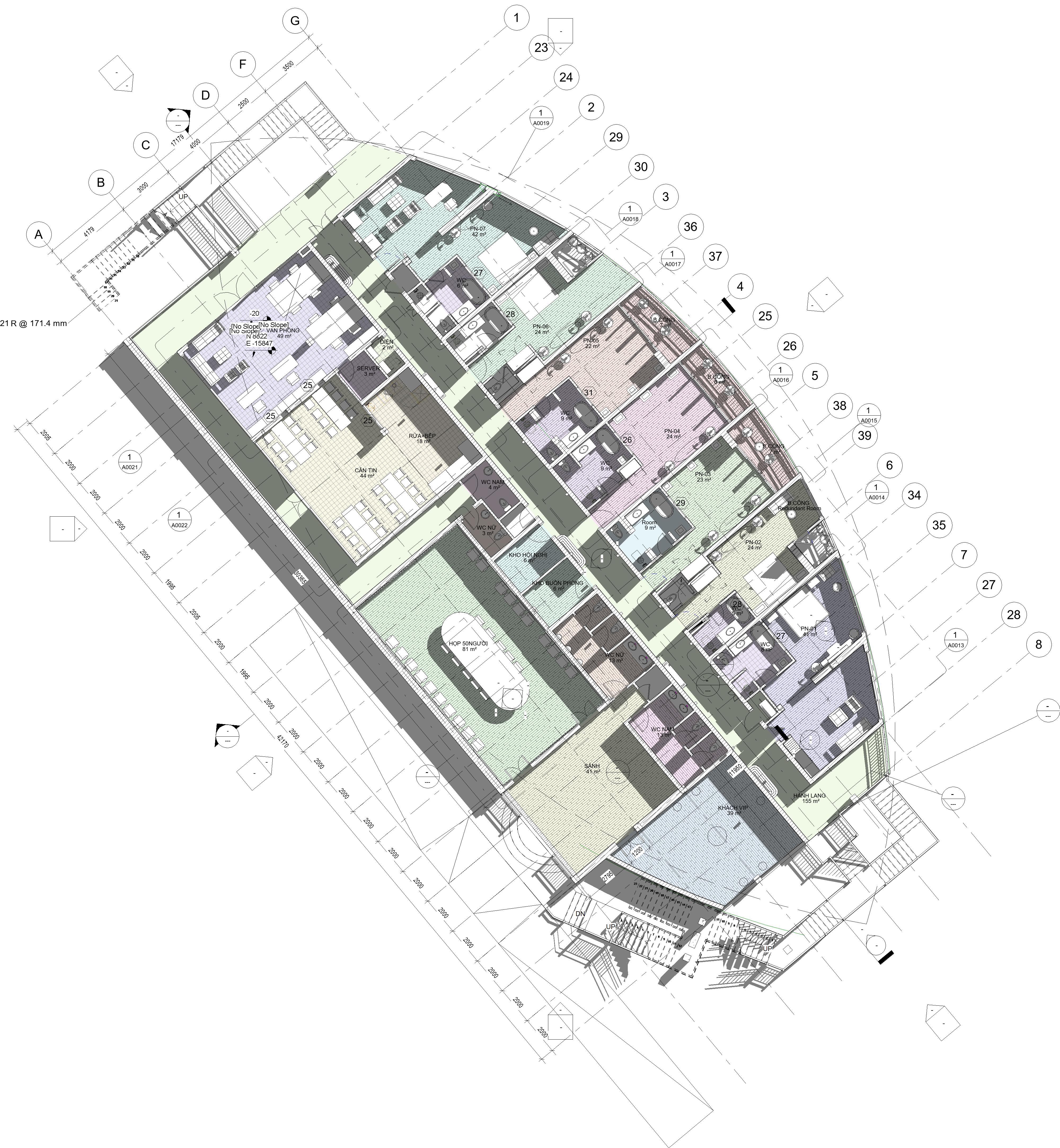 Một trong những điểm đặc biệt nhất của công trình chính là sự kết hợp giữa hệ kết cấu bê tông cốt thép và hệ khung tre quy mô lớn.