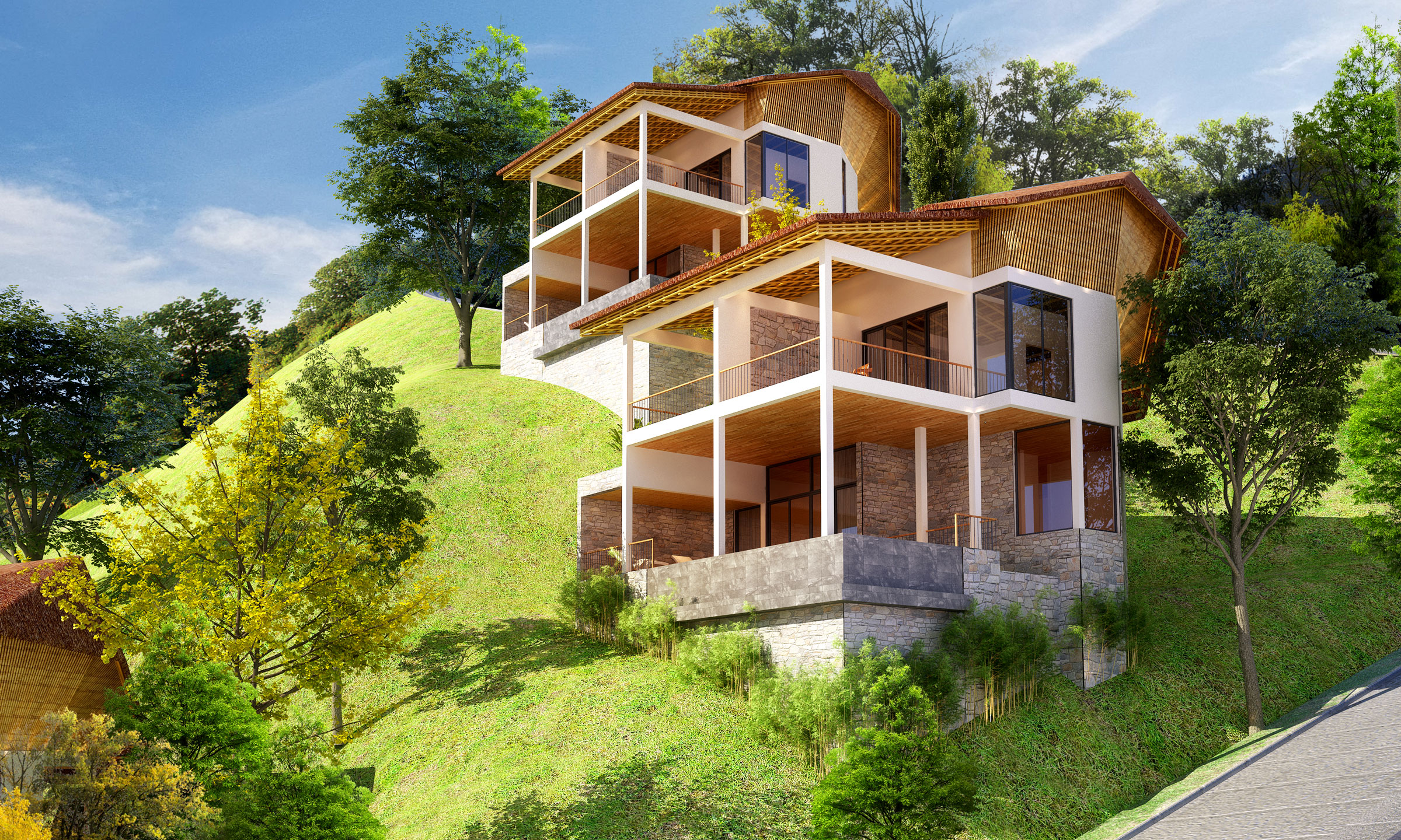 Biệt thự cao cấp 03 là một giải pháp kiến trúc thông minh trên địa hình dốc, nơi không gian được tổ chức theo chiều cao và trải nghiệm được dẫn dắt theo từng bước di chuyển. Đây là một mô hình biệt thự nghỉ dưỡng bền vững, hiệu quả và giàu giá trị sử dụng lâu dài.