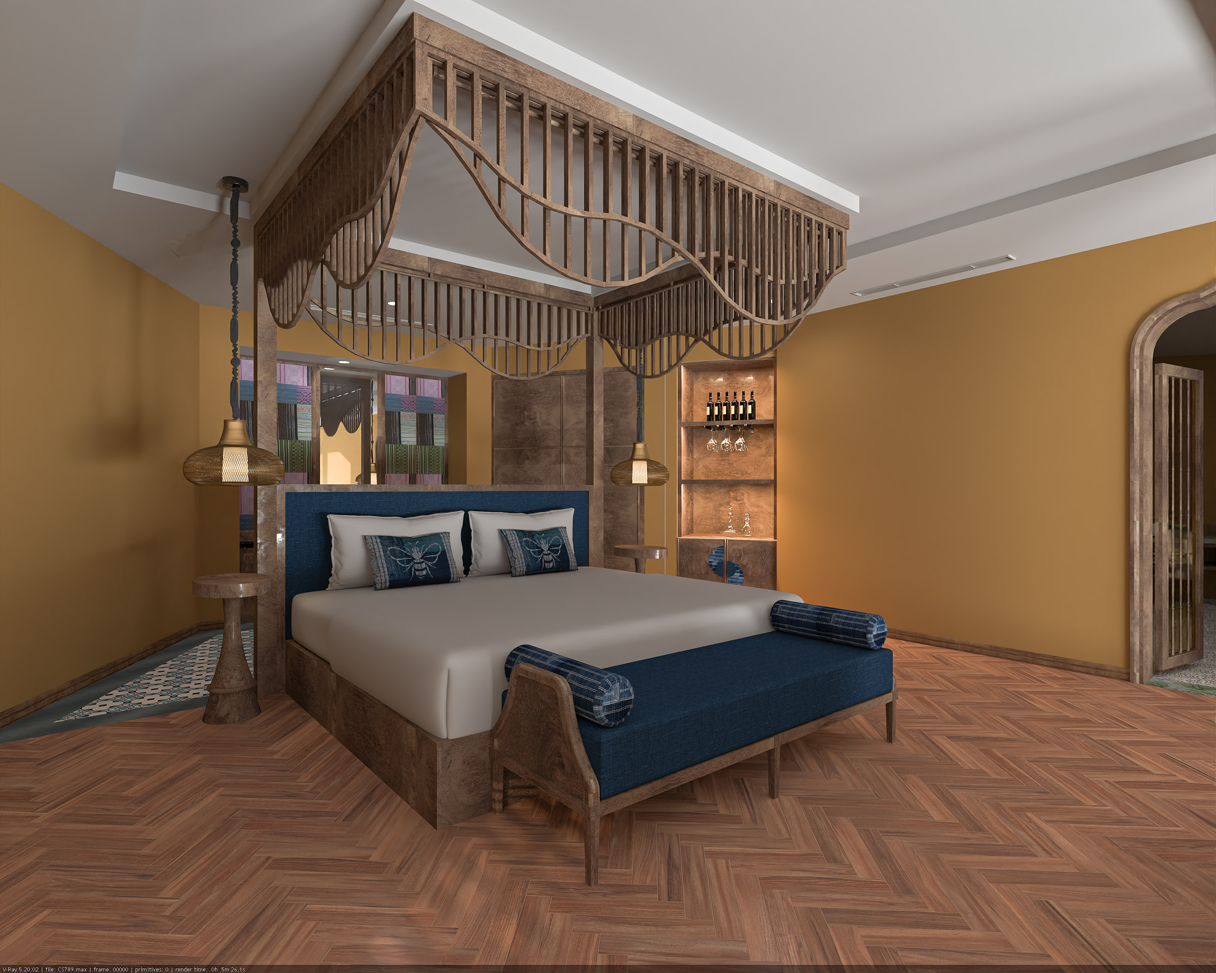 • Mái và lam gỗ/tre → tạo cảm giác ấm và gần gũi