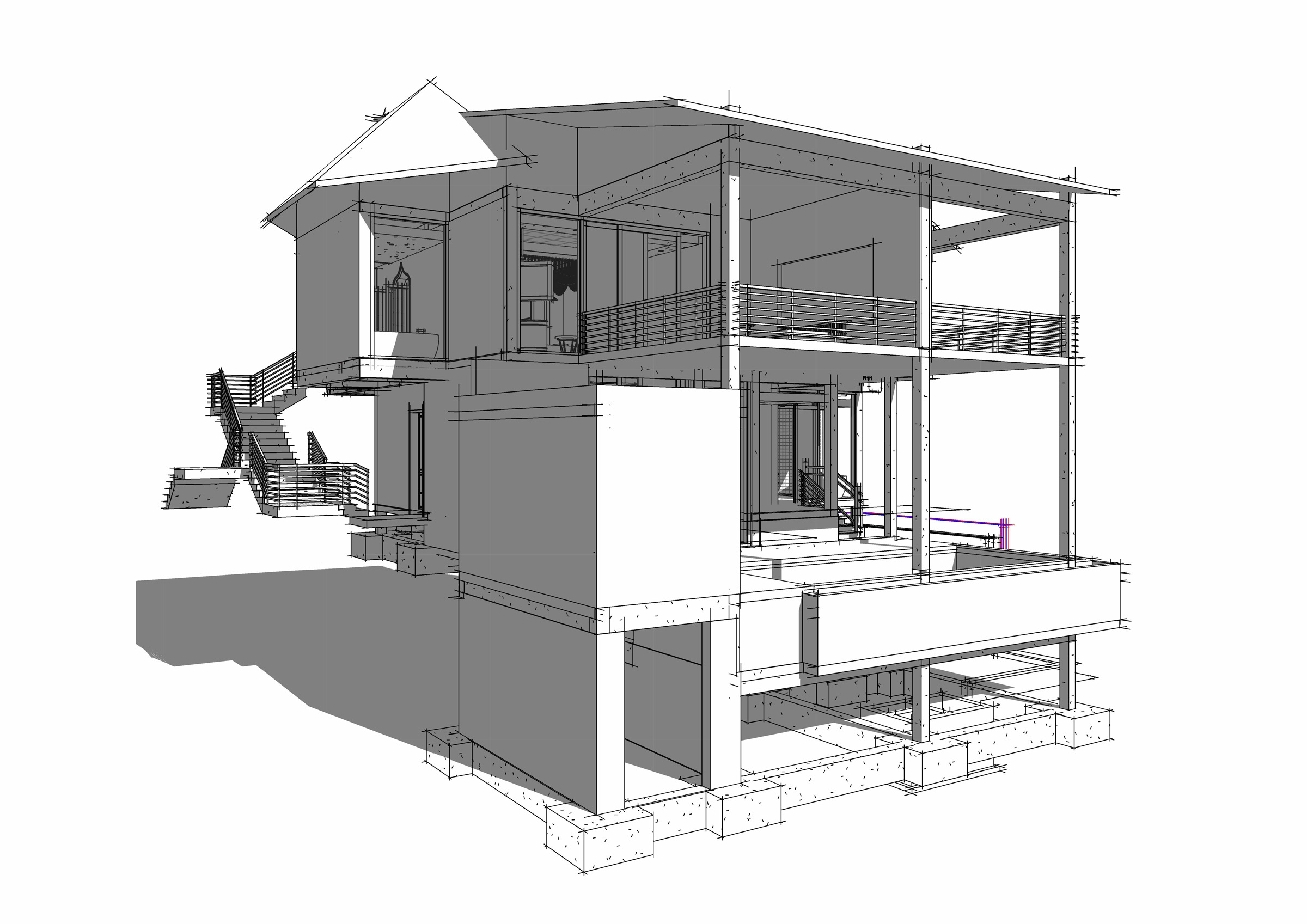 • Các tầng trên mở rộng dần, tạo ban công và không gian đệm